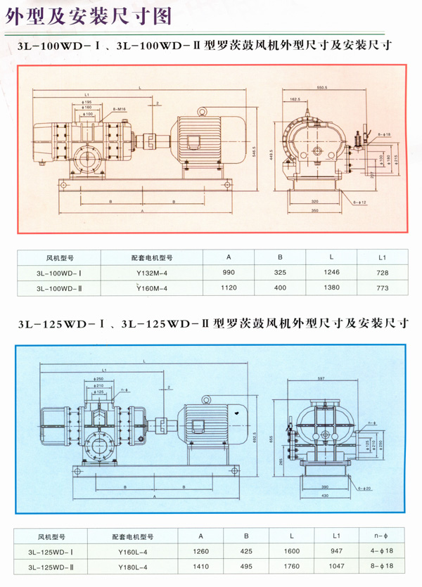 三、3L-WD型三葉羅茨鼓風(fēng)機(jī)外型及安裝尺寸圖:
