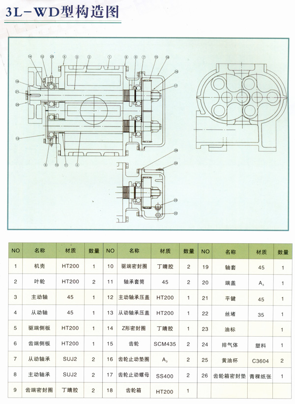 五、3L-WD型三葉羅茨鼓風(fēng)機(jī)3L-WD型構(gòu)造圖:
